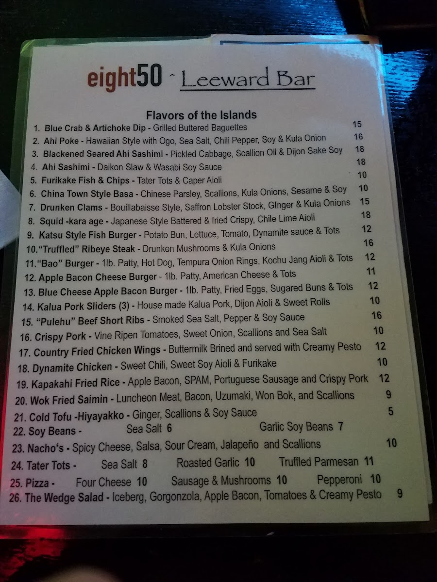 Welcome to eight50, an exquisite dining experience located at 850 Kamehameha Hwy, Pearl City, HI. This vibrant establishment specializes in an array of delectable dishes complemented by an impressive selection of whiskeys and craft beers.